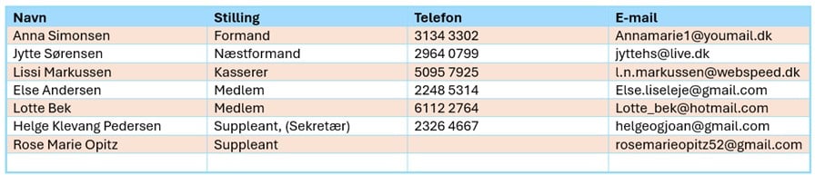 Aktivitetscenterets bestyrelse vælges hvert år på den ordinære generalforsamling